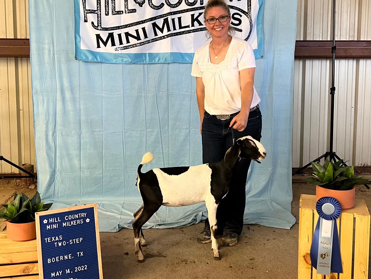 1x Reserve Grand Champion Junior Doe: Hill Country Mini Milkers Texas Two-Step 2022