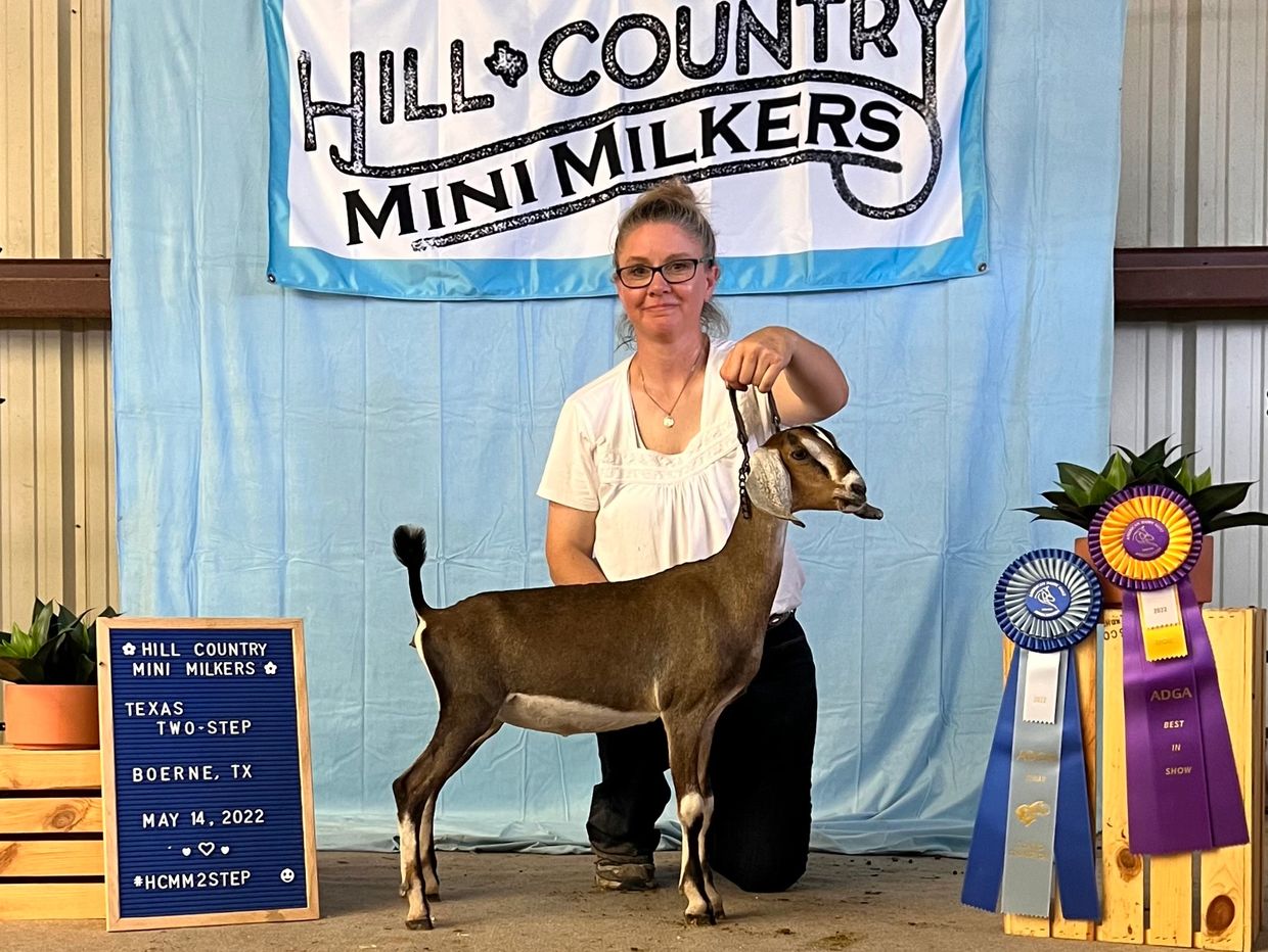 1x Grand Champion Junior Doe (dry leg earned): Hill Country Mini Milkers Texas Two-Step 2022
